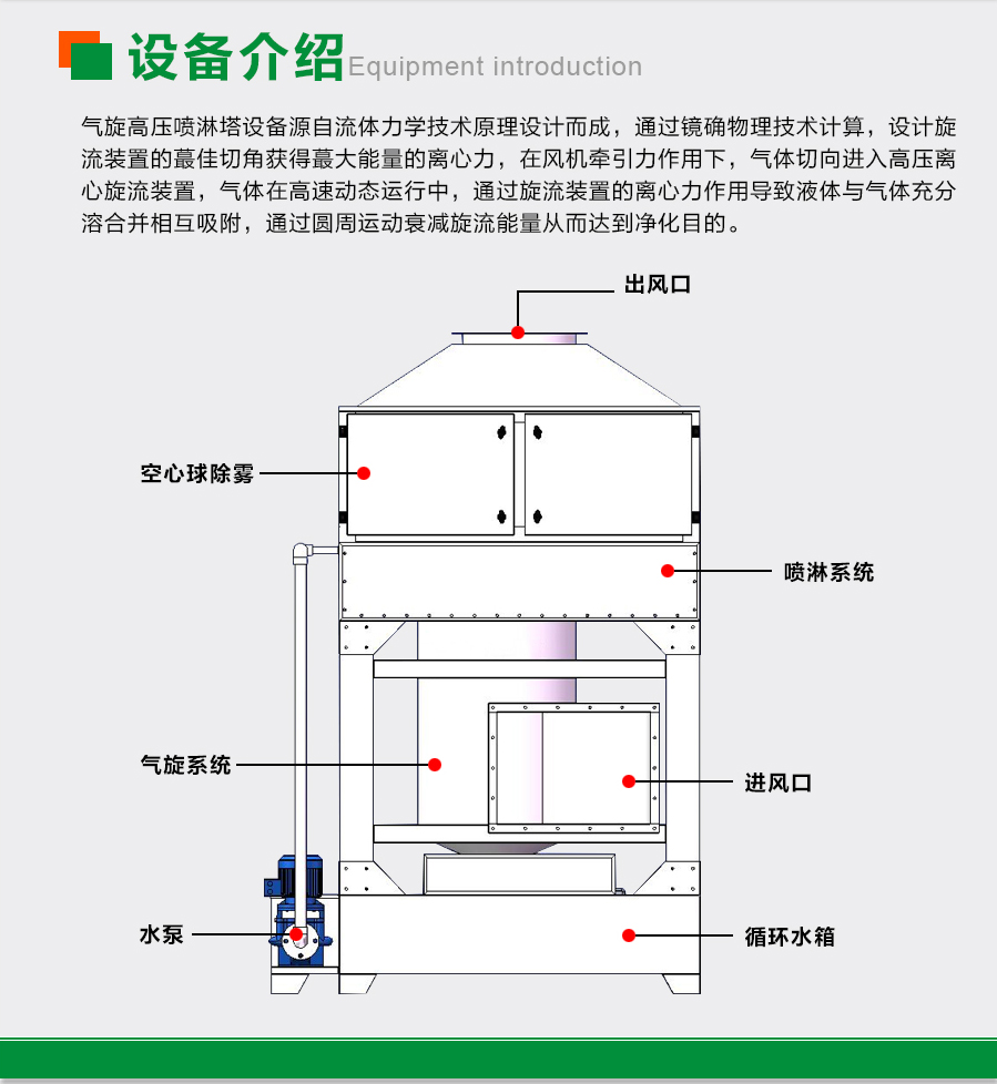雙級氣旋噴淋塔設(shè)備介紹: