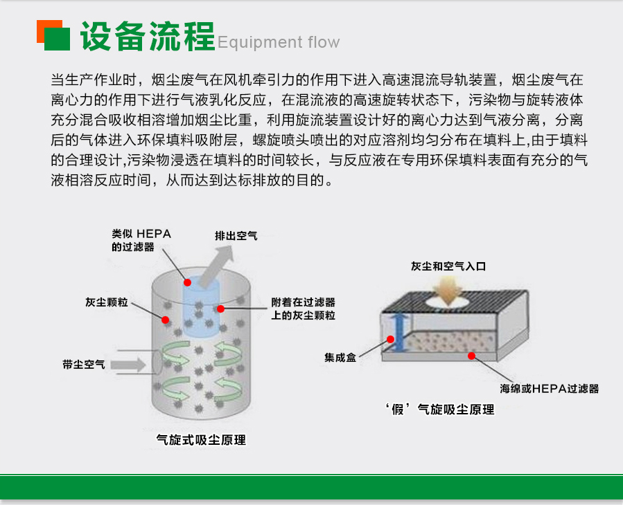 雙級氣旋噴淋塔設(shè)備原理:
