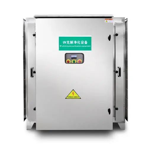 uv光解除臭設(shè)備:有機(jī)廢氣氣體處用排風(fēng)設(shè)備輸入到UV光解設(shè)備后,運(yùn)用高能UV紫外線光束及臭氧對(duì)惡臭氣體進(jìn)行協(xié)同分解氧化反應(yīng),使惡臭氣體物質(zhì)其降解化成低分子化合物、水和二氧化碳,再通過(guò)排風(fēng)管道排出室外。