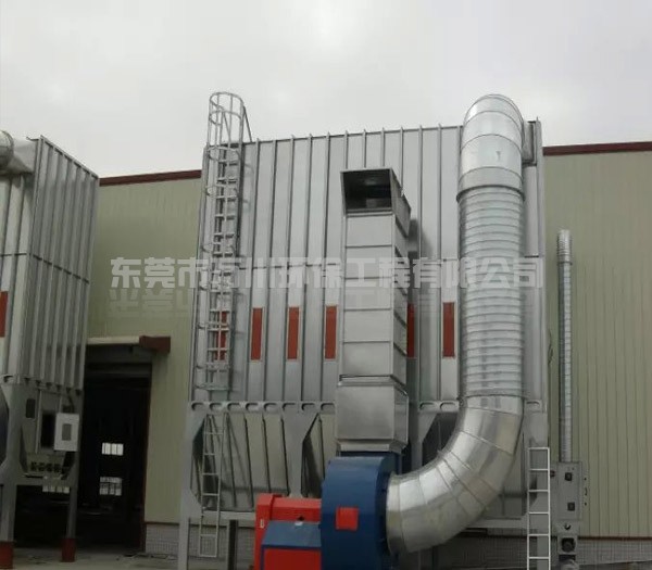 “含塵廢氣在風機作用下,通過風管收集進入脈沖布袋除塵器,含塵廢氣進入中箱體下部,在擋風板形成預分離室內(nèi),粉塵因慣性作用落入灰斗。廢氣沿擋風板向上到達濾袋,粉塵被阻留在濾袋外面,干凈氣體進入袋內(nèi),并經(jīng)過袋口和上箱體及風機再排出。